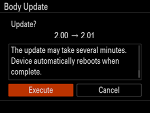 - Select Execute on the system software update confirmation screen. The software version update will start.