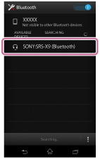 若未顯示[SONY:SRS-X9 (Bluetooth)],請搜尋裝置。詳細資訊請參閱智慧型手機的使用說明書。