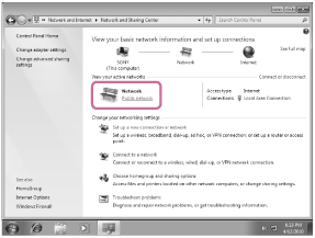 設定完成時,在[Network and Sharing Center]畫面中確認[View your active networks]下的項目已變更為[Home network]或[Work network]。