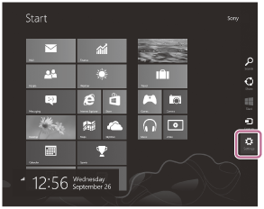 - 將滑鼠指標移至開始畫面的右上角(或右下角)以顯示快速鍵,然後選擇[Settings]。