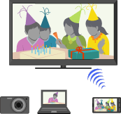 Cho phép bạn gửi nội dung từ thiết bị tương thích Wi-Fi Direct/Wi-Fi (ví dụ như điện thoại thông minh, PC) tới TV bằng kết nối trực tiếp mà không cần bộ định tuyến không dây (hoặc điểm truy cập).
