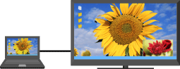 Tính năng này cho phép bạn xem hai hình ảnh đồng thời. Bạn có thể hiển thị hình ảnh từ bất kỳ nguồn ngõ vào nào ở chế độ toàn màn hình trừ PC được hiển thị trong một cửa sổ ghép.