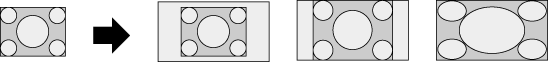 - Displays a 4:3 picture that has been horizontally stretched to 16:9, in 4:3 format.