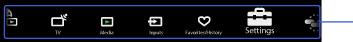 You can select a desired category in the Home Menu and access items, such as programme listings, input sources, TV settings menu, etc.