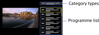 buttons to select the desired category type.Select the desired programme from the programme list using the PROG +/- or