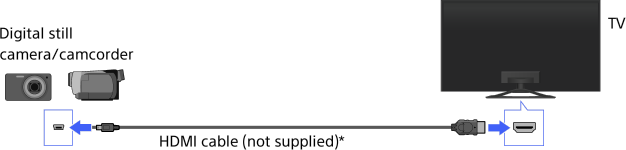 Connect your Sony digital still camera or camcorder using an HDMI cable. Use a cable that has an HDMI mini jack for digital still camera/camcorder end, and a standard HDMI jack for the TV end.