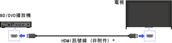 為了獲得最佳畫質,建議使用HDMI連接。如果BD/DVD播放機有HDMI插孔(插座),使用HDMI訊號線來連接。