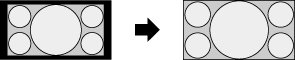 - 以原始尺寸顯示4:3畫面。16:9的螢幕會被邊條填滿。