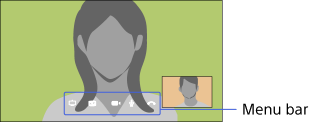When the other party is displayed in full screen, you can show/hide the menu bar by pressing the
