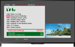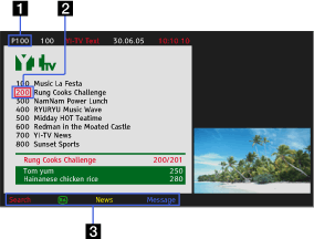 You can view a range of text and text-based graphical information, including national news, weather information and TV schedules. Information of interest can be chosen from several pages by entering a number.