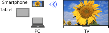 “Screen mirroring” is a function to display the screen of a Screen mirroring compatible device (such as a smartphone or PC) on the TV by Miracast technology. A wireless router (access point) is not necessary to use this function.