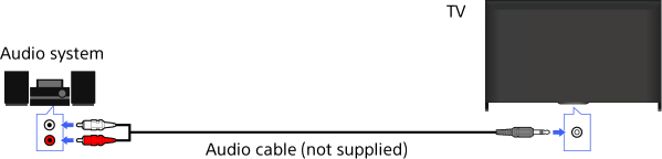 Connect an audio system (e.g. amplifier) to the TV, using an audio cable.