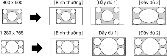 - Hiển thị hình ảnh 4:3 theo kích cỡ gốc. Hiển thị các thanh bên để lấp đầy màn hình 16:9.