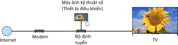 Bạn có thể phát tệp ảnh /nhạc/video trong thiết bị điều khiển (ví dụ: máy ảnh kỹ thuật số) trên màn hình TV bằng cách vận hành trực tiếp thiết bị điều khiển. Thiết bị điều khiển cũng phải tương thích với renderer.