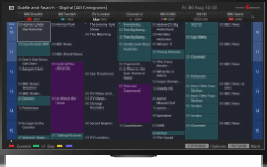 - Trong khi hiển thị Hướng dẫn chương trình, bằng cách bấm nút OPTIONS, bạn có thể tạo danh sách kênh ưa thích hoặc chuyển đổi giữa hướng dẫn chương trình Kỹ thuật số/Vệ tinh/Đầu thu kỹ thuật số.