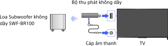 Kết nối Bộ thu phát không dây được cung cấp với Loa Subwoofer không dây SWF-BR100 để sử dụng Loa Subwoofer không dây.