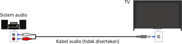 Sambungkan sistem audio (msl. amplifier) ke TV menggunakan kabel audio.