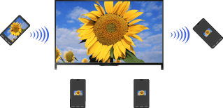 - Hingga 10 smartphone/tablet yang bisa disambungkan ke TV secara bersamaan. Untuk menyambungkan perangkat lain saat 10 perangkat sudah tersambung, lepas sambungan perangkat yang tidak diperlukan, lalu sambungkan perangkat lain tersebut.