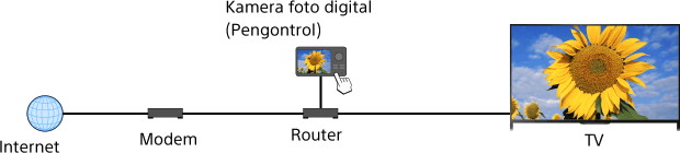 Anda dapat memutar file foto/musik/video di pengontrol (msl. kamera foto digital) di layar TV dengan mengoperasikan pengontrol secara langsung. Pengontrol juga harus kompatibel dengan renderer.
