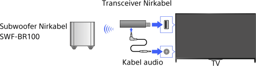 Sambungkan Transceiver Nirkabel yang disertakan dengan Subwoofer Nirkabel SWF-BR100 untuk menggunakan Subwoofer Nirkabel.