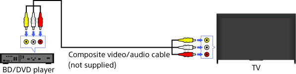 If your BD/DVD player has composite jacks (sockets), connect it using a composite video/audio cable.