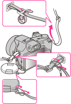 Attach the shoulder strap and lens cap strap to prevent the camera from damage by being dropped.