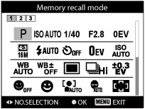 (Memory recall mode) after completing the shooting settings, the registered settings are given priority and the original settings may become invalid. Check the indicators on the screen before shooting.