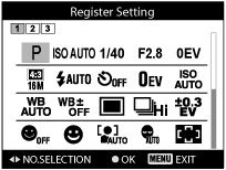 (Memory recall mode) after completing the shooting settings, the registered settings are given priority and the original settings may become invalid. Check the indicators on the screen before shooting.
