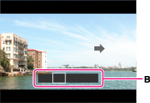 遵循螢幕上的指示,用相機搖攝到指引(B)的末端。