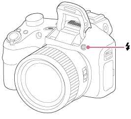 - 視拍攝情況而定,用閃光燈拍攝且變焦設定為W時,鏡頭的陰影可能會出現在畫面上。如果發生這種情形,遠離被攝體拍攝,或者將變焦設定為T,然後再用閃光燈拍攝。