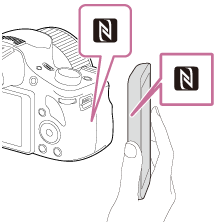 (N標記)顯示於產品上時,NFC功能才可用。 - 將智慧型手機碰觸產品1-2秒鐘,直到PlayMemories Mobile啟動為止。