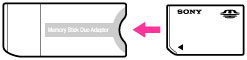若要以本相機使用“Memory Stick Micro”,務必要將“Memory Stick Micro”插入和Duo尺寸一樣的“M2”轉接器中。如果將“Memory Stick Micro”插入相機時不使用和Duo尺寸一樣的“M2”轉接器,可能會無法將其從相機中取出來。