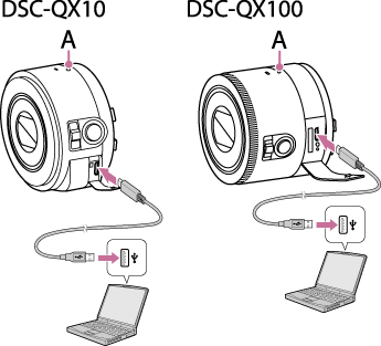 - 如果照相機連接到並未連接電源的膝上型電腦,則膝上型電腦的電池電量會下降。充電時間請勿過長。