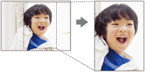 相機偵測並拍攝面孔、特寫或以追蹤對焦功能追蹤到的被攝體時,捕捉到影像會被自動修整為最佳構圖。