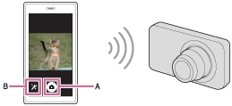 - Check the composition of the image on the smartphone screen, and then press the shutter button (A) on the smartphone to shoot an image.