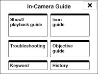 This camera contains an internal function guide. This allows you to search for camera functions according to your needs.