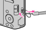 ติดสายร้อยแล้วสอดมือของท่านผ่านห่วงเพื่อป้องกันกล้องเสียหายจากการตกหล่น