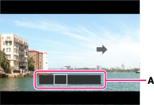 กวาดกล้องไปจนสุดขอบแถบแนะนำ (A) ตามตัวแสดงที่ปรากฏบนหน้าจอ LCD