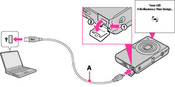 เชื่อมต่อกล้องเข้ากับเครื่องคอมพิวเตอร์ของท่านด้วยสาย USB เฉพาะ (A)