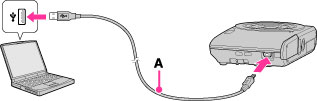 Connect the camera to your computer using the dedicated USB cable (supplied) (A).