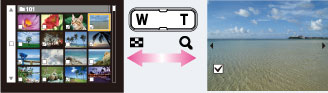 ท่านสามารถสลับระหว่างโหมดแสดงดัชนีกับโหมดแสดงภาพเดี่ยวขณะเลือกภาพกดด้าน