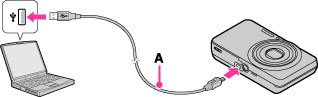 เชื่อมต่อกล้องเข้ากับเครื่องคอมพิวเตอร์ด้วยสาย USB เฉพาะ (ที่ให้มาด้วย) (A)