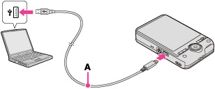 Connect the camera to your computer using a micro USB cable (supplied) (A).