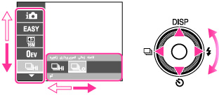 گردونه کنترل را برای حرکت دادن چهارچوب انتخاب چرخانده یا طرف بالا/پایین/راست/چپ گردونه را فشار دهید. در بعضی از وضعیت ها، شما می توانید چهارچوب انتخاب را توسط چرخاندن گردونه کنترل نیز حرکت دهید.