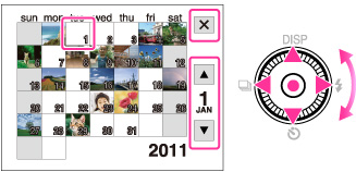 برای مشاهده تصاویر در تاریخ انتخاب شده در وضعیت فهرست، تاریخ را با گردونه کنترل انتخاب نموده و
