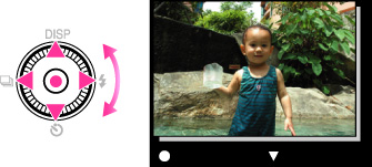 تصاویر نمونه کوچک از یک سری عکس های زنجیره ای در پایین صفحه LCD نمایش داده می شوند. یک تصویر انتخاب شده بزرگ می شود.
