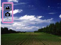 در تشخیص صحنه، موقعیت یک علامت نشانه نمایش داده شده روی صفحه LCD بسته به موقعیت ها متفاوت است. این مورد به این که آیا دوربین یک صحنه یا وضعیت را تشخیص می دهد بستگی دارد.