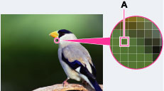 در مورد "کیفیت تصویر" و "اندازه تصویر"یک تصویر دیجیتال از مجموعه ای از نقاط کوچک به نام پیکسل ساخته می شود. اگر حاوی تعداد زیادی پیکسل باشد (A)، تصویر بزرگ شده، حافظه بیشتری را اشغال نموده، و تصویر با جزئیات نمایش داده می شود. "اندازه تصویر" با تعداد پیکسل ها نشان داده می شود. اگر چه شما نمی توانید تفاوت ها را روی صفحه دوربین ببینیند، هنگامی که تصویر روی یک صفحه کامپیوتر چاپ یا نمایش داده می شود جزئیات دقیق و زمان پردازش داده ها متفاوت می باشند.