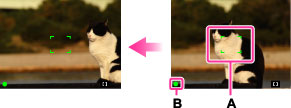 هنگامی که دکمه دیافراگم را در وضعیت تصویربرداری تصویر ساکن تا نیمه به پایین فشار می دهید، یک چهارچوب سبزرنگ در اطراف ناحیه ای که در تمرکز است نمایش داده می شود.