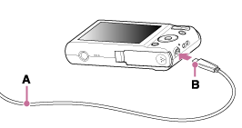 - Connect the camera to your computer using the dedicated USB cable (supplied) (A).